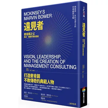 ![]() | 馬文?鮑爾在麥肯錫任職近 60 年,被譽為麥肯錫之父、麥肯錫的靈魂,更催生現代管理顧問產業。 他以身作則告訴我們:懷抱理想並專注實踐,是再多錢也換不到的! 「麥肯錫」不只是一家公司的名字,它是管理專業與菁英的同義詞,是全球頂尖人才的培育所,更是前進各國董事會與政治權力中心的特快車。(...More) |